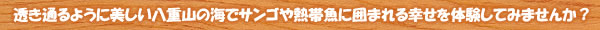 八重山ブルーの海中を体験ダイビングで楽しんでいただいた後、幻の島へ上陸します。青い空と海に真っ白な砂浜、コントラストをお楽しみ下さい。
