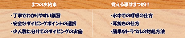 | 参加資格 | 10歳以上の心身ともに健康な方 ダイビング後の当日に飛行機搭乗予定の無い方。